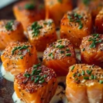 Season the Salmon: In a bowl, mix the garlic powder, smoked paprika, salt, and pepper. Toss the salmon cubes in the seasoning until they are well coated.