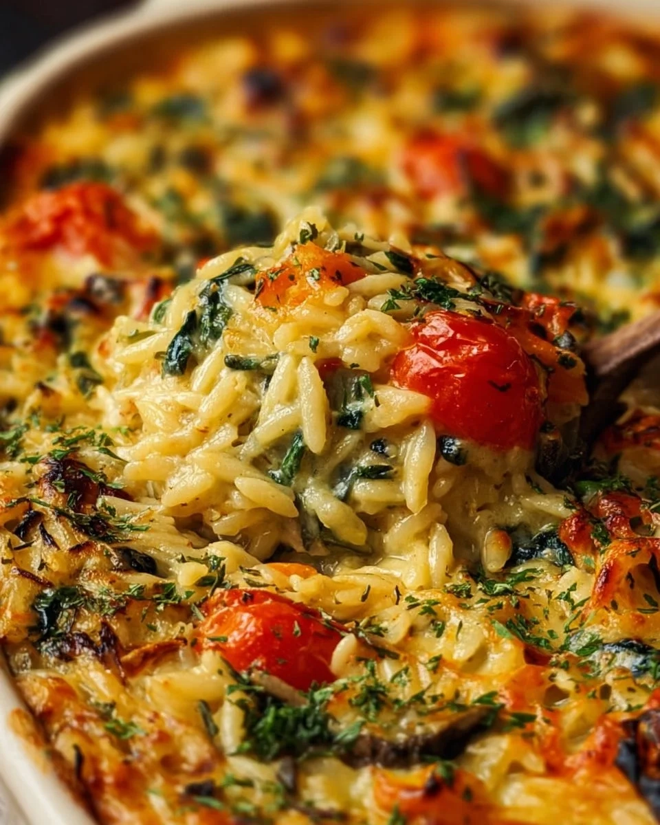 See full steps with tips & photos → Cheesy Baked Orzo with Vegetables