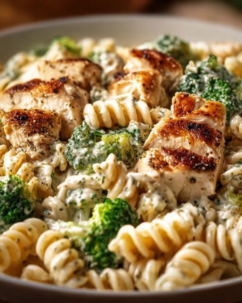 Serve Creamy Rotisserie Chicken Broccoli Pasta in large bowls. You can sprinkle some extra Parmesan cheese on top for added flavor. This dish pairs well with a simple green salad or garlic bread. It’s a complete meal all on its own, but adding a side can make it feel even more special.