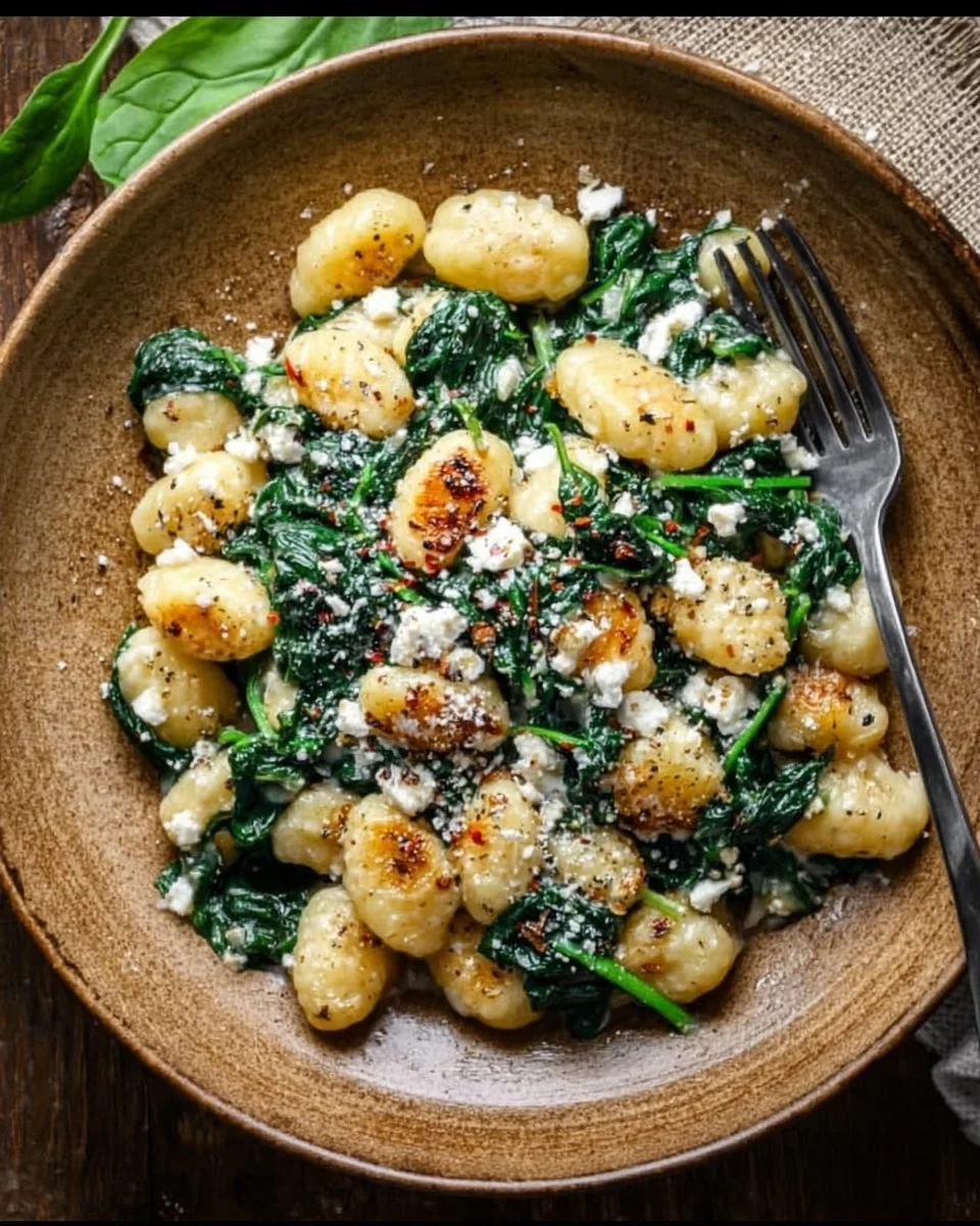 A delightful meal featuring soft gnocchi, fresh spinach, and tangy feta in a creamy sauce, perfect for busy weeknights or impressing guests.