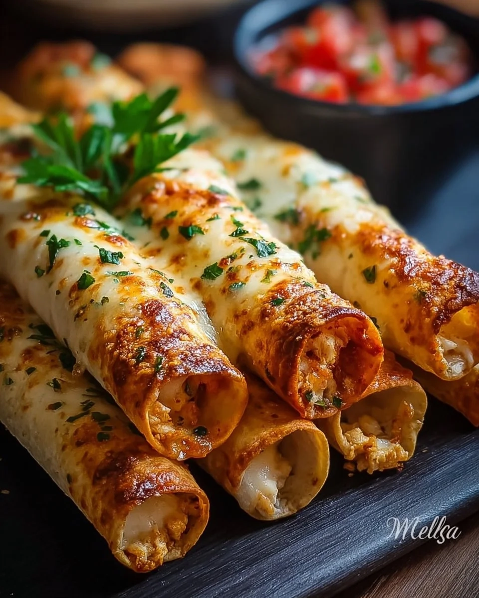 Crispy Chicken Taquitos are a tasty and easy meal or snack, filled with flavorful ingredients and baked to perfection.