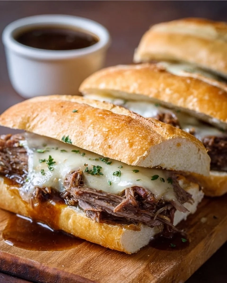 Serve these sandwiches warm right after you make them. Each sandwich is best enjoyed with a side of the reserved au jus for dipping. You can also add some fresh parsley on top for a touch of color and flavor.