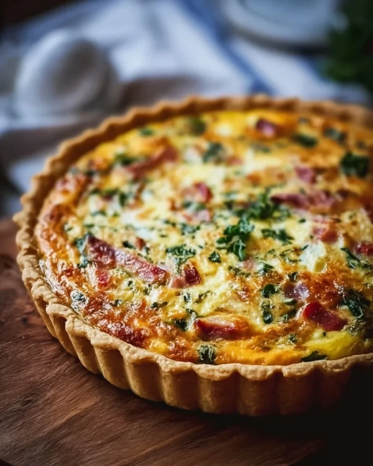 A delightful and customizable quiche perfect for breakfast, brunch, or a light dinner, featuring eggs, cheese, and your choice of vegetables and meats.