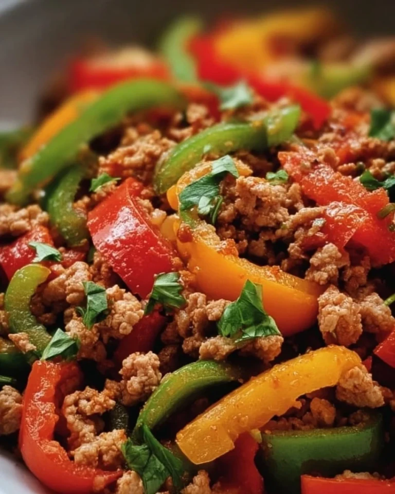A quick and tasty dish featuring lean ground turkey, colorful bell peppers, and hearty spices, perfect for busy weeknights.