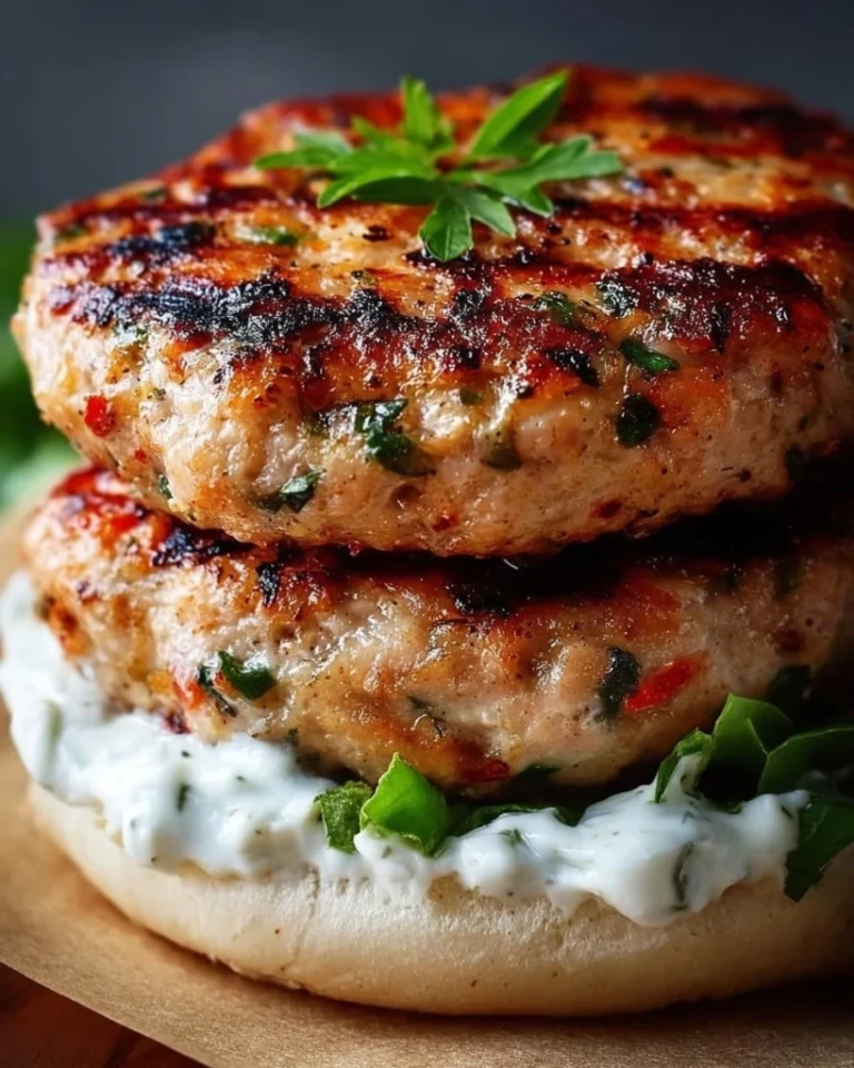 A delightful twist on a classic burger, these juicy Greek chicken burgers are packed with flavor from fresh herbs, feta cheese, and tzatziki sauce. Perfect for summer cookouts or quick weeknight dinners.