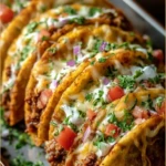 Oven-Baked Cheesy Tacos are the ultimate comfort food! They are easy to make, fun to eat, and perfect for any occasion, from family dinners to game days. With crispy shells filled with seasoned beef and melted cheese, everyone will love them. Add your favorite toppings for extra flavor, making these tacos a hit with both kids and adults.
