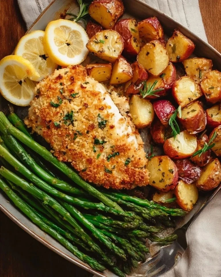 Parmesan Crusted Chicken Sheet Pan Dinner