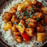 Delicious Pineapple Chicken served with rice, showcasing sweet and savory flavors.