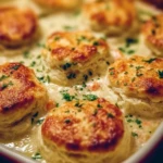 A comforting dish that blends the savory flavors of chicken pot pie with fluffy Red Lobster biscuits, perfect for cozy nights.