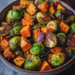 Keywords: Brussels sprouts, sweet potatoes, roasted vegetables, healthy side dish, vegan recipe