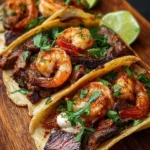 Steak and Shrimp Tacos are a delicious and fun meal that everyone will love. Combining the rich flavors of steak with tender shrimp makes for a tasty dish that is perfect for gatherings or a cozy dinner at home. The vibrant zippy slaw adds crunch and freshness, while the warm corn tortillas hold everything together perfectly. This recipe is not only satisfying but also versatile, allowing you to customize the toppings to your preference.