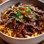 Serve Hot: Once everything is combined, transfer to serving plates. Garnish with chopped green onions for a fresh touch. Enjoy your Sticky Beef Noodles hot!