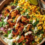 Delicious street corn chicken bowl with juicy chicken and fresh toppings