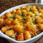 Tater Tot Casserole is a classic comfort food that brings warmth and satisfaction to the dinner table. It’s easy to prepare and uses simple ingredients, making it perfect for busy weeknights or family gatherings. The combination of ground beef, creamy soup, and crispy tater tots creates a delightful texture and flavor that everyone loves. Plus, it’s a great way to use up leftover vegetables or cheese in your fridge!